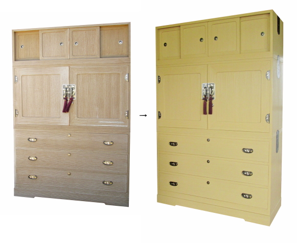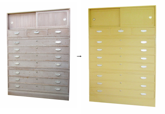 ご婚礼時に購入された桐タンスの外部全体にカビが発生した為、リフォームのご依頼をいただきました。