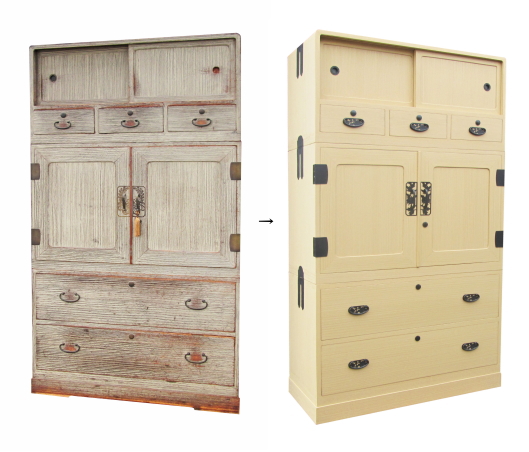 ご婚礼時に購入された桐タンスの外部全体にカビが発生した為、リフォームのご依頼をいただきました。